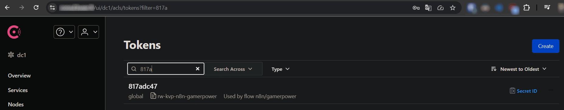 Puis on crée un nouveau token Consul, sur lequel on attache cette policy.